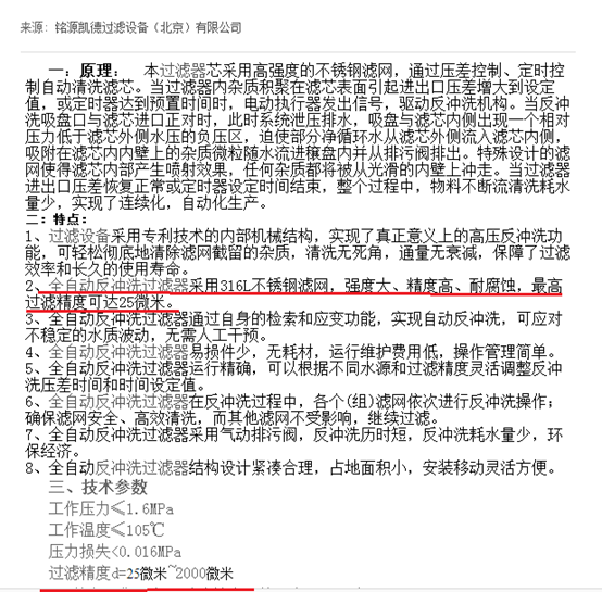 所以现在反冲洗过滤器最高过滤精度已经可以到达20微米。已经有客户将20um过滤网用于反冲洗过滤设备上,效果很好。