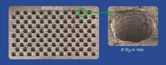 Specifications: thickness 0.02-2mm, aperture 0.01mm-10mm, maximum diameter deep up to 1:20.